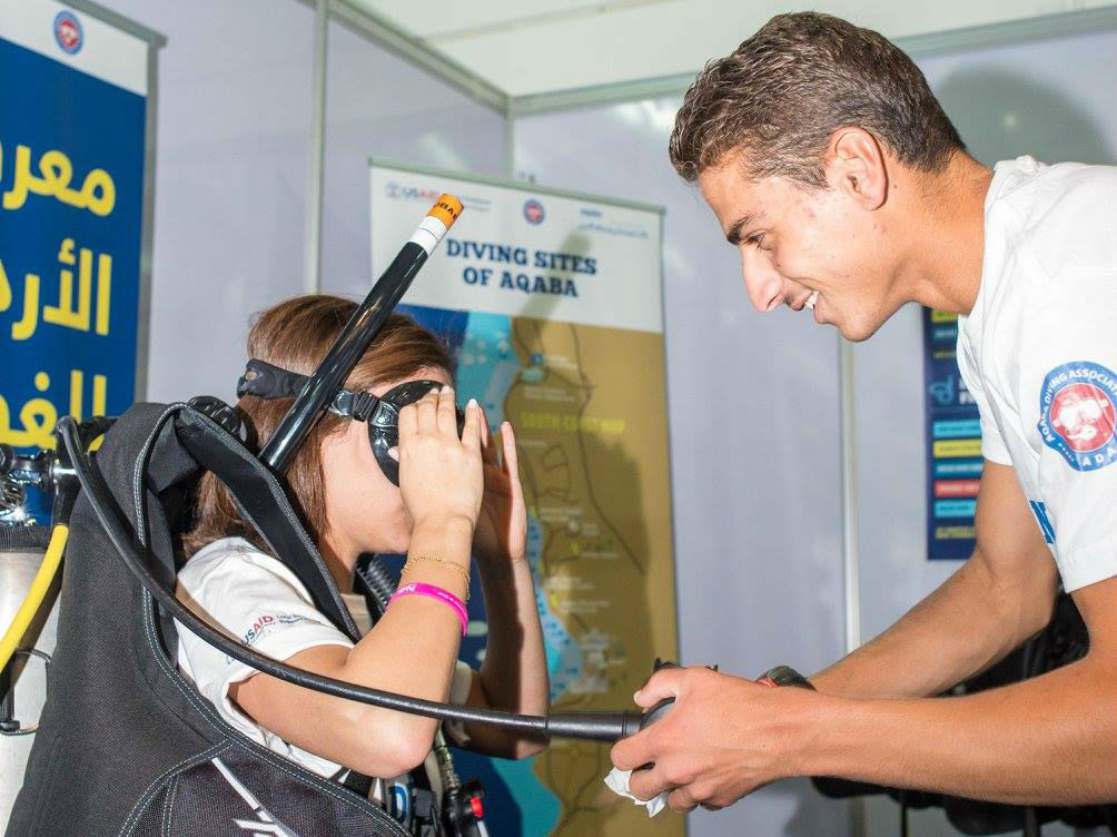 To help the diving centers gain a larger share of the local market and increase their revenues, the USAID Jordan Local Enterprise Support Project (LENS) partnered with the Aqaba Diving Association (ADA) to organize the first ever Jordan Dive Show. Held in Amman over three days during April 2016, the dive show showcased the services and courses offered by the 21 member diving companies of the ADA, and introduced the sport of diving and the stunning marine life in Aqaba to thousands of Jordanians.